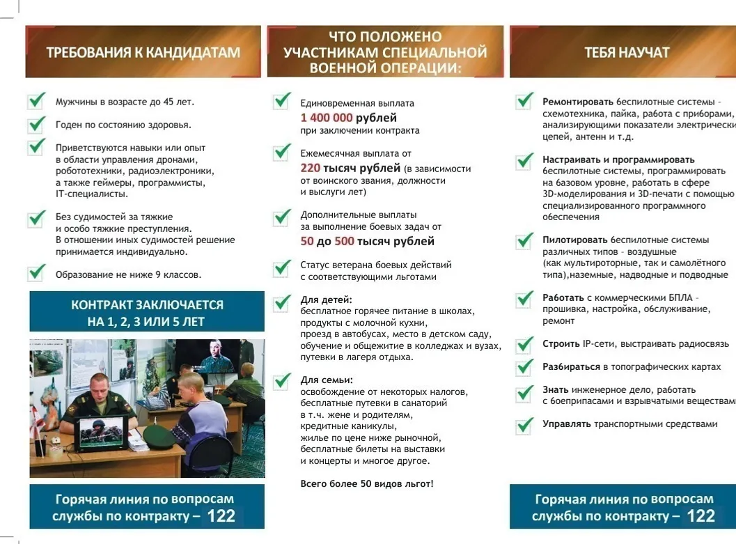 БПЛА өлкәсендә контрактчылар тулы социаль пакет ала. Аларга законнарда каралган барлык түләүләр, ташламалар һәм социаль гарантияләр кагыла.